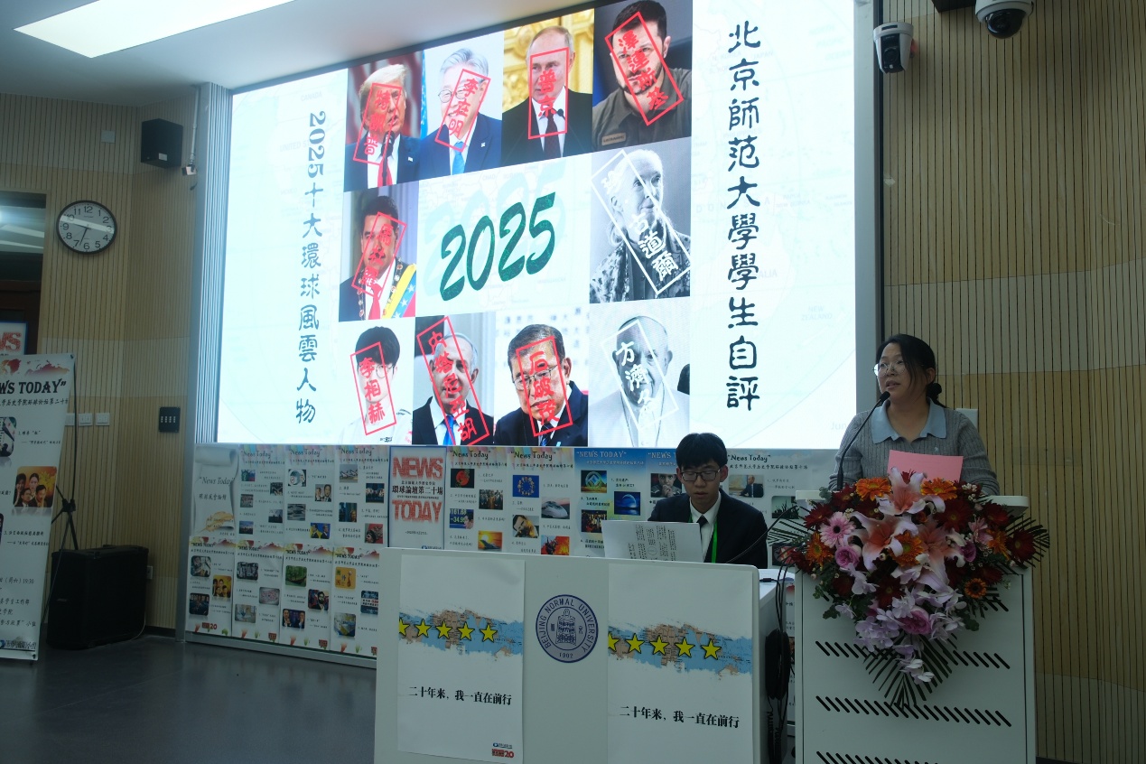 活动中,赵云慧老师揭晓了我校学生自主评选的“2025十大环球新闻人物”。展示期间还穿插进行了“人物迷踪”“环球二十年”“挑战十大人物”等知识性与趣味性兼备的时事知识互动环节,以寓教于乐的形式获得了在场观众的热烈反响。
