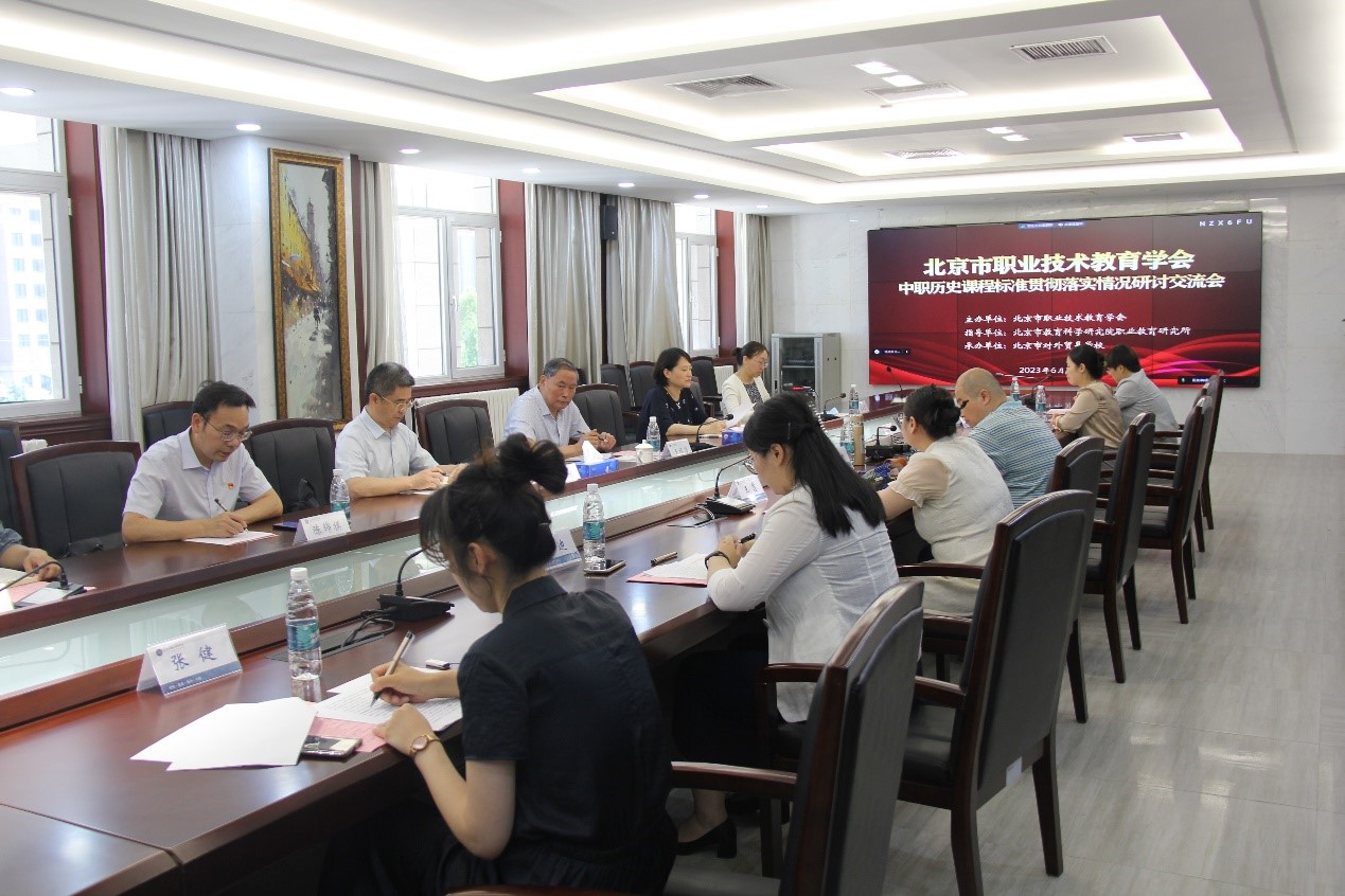 为促进各中职学校之间互学互鉴,帮助北京市中职历史教师更好地理解和落实《中等职业学校历史课程标准(2020 年版)》,推动北京市中职历史学科建设,北京市职业技术教育学会于2023年6月13日在北京市对外贸易学校召开中职历史课程标准贯彻落实情况研讨交流会,会议由北京市对外贸易学校副校长徐明主持。