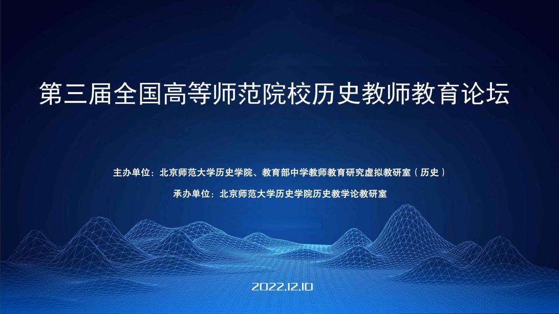 2022年12月10日-11日,由必威betway西汉姆联与教育部中学教师教育研究虚拟教研室(历史)合作主办的第三届“全国高等师范院校历史教师教育论坛”顺利进行,本届论坛主题为:理论与实践的重构——新时代的历史教师教育。来自全国20余所师范院校的历史教学专家、学科教学研究生、师范生和部分中学的老师共50余人在论坛发言,研讨新时代我国历史教师教育的理论与实践相关问题,专家对学生的教学展示和学位论文开题报告做了专业指导。